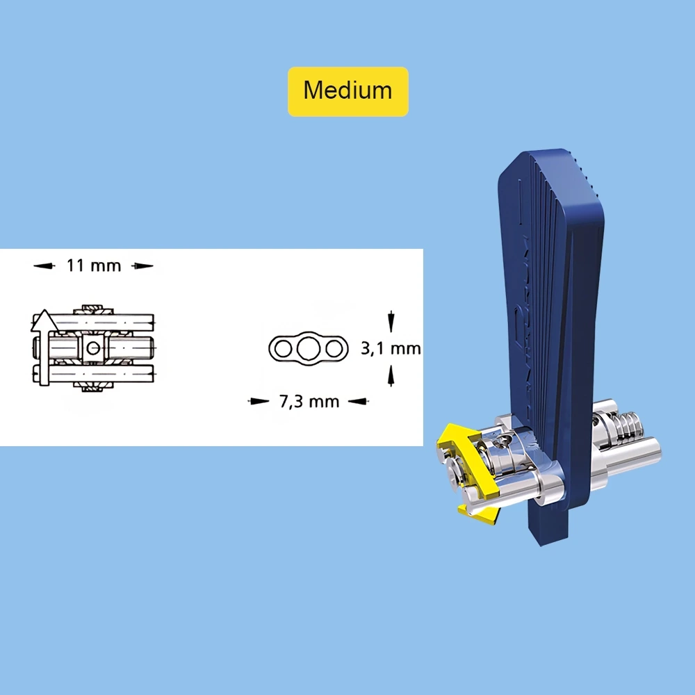 قابل استفاده برای گسترش عرضی و دیستالیزاسیون در فک پایین یا برای فک های فوقانی باریک (Mini)، گسترش عرضی و دیستالیزاسیون در فک بالا و پایین (Medium)، گسترش عرضی در فک فوقانی (Maxi) و فوق العاده قوی، برای گسترش عرضی در فک فوقانی و دستگاههای ارتوپدی عملکردی دو فازی (Magnum)
