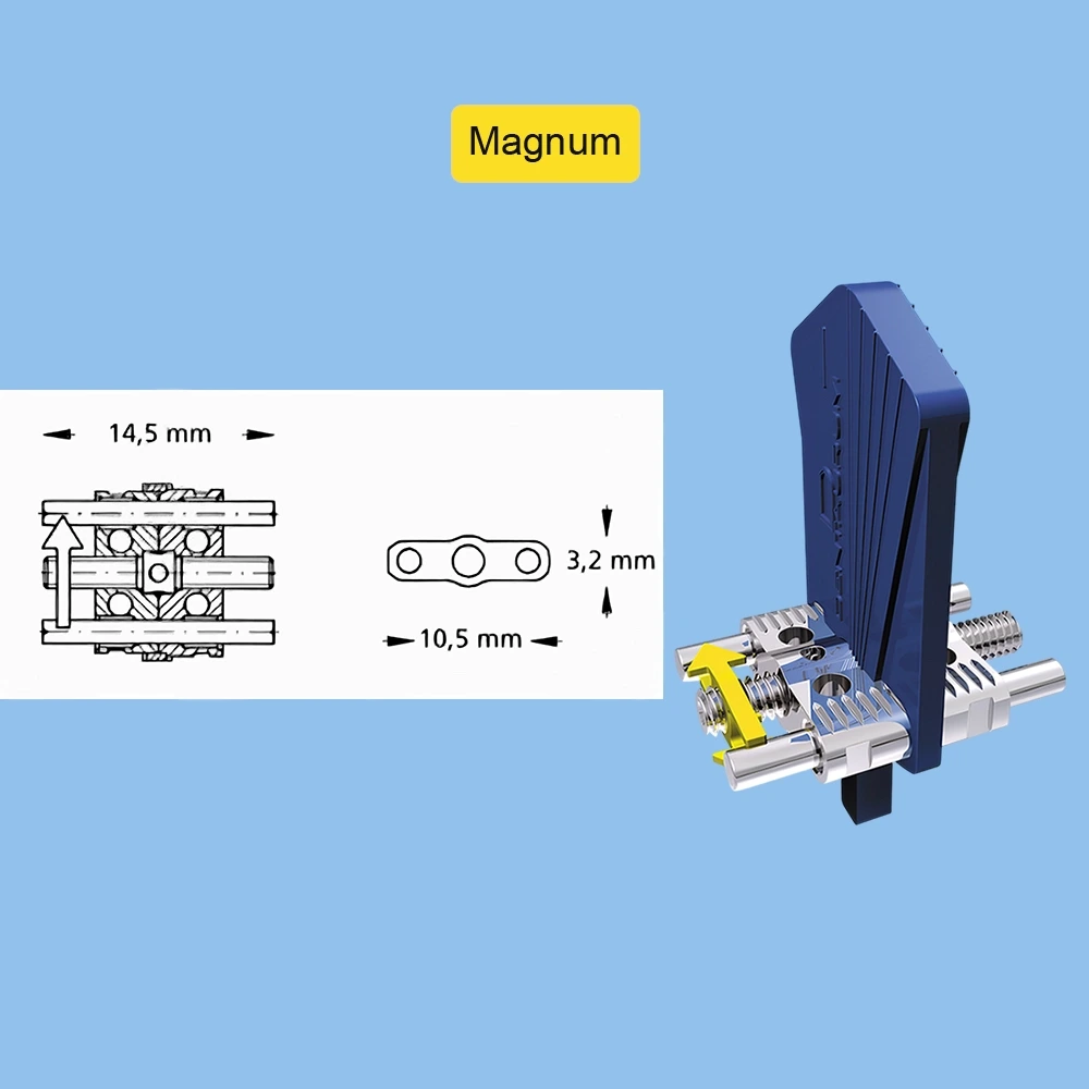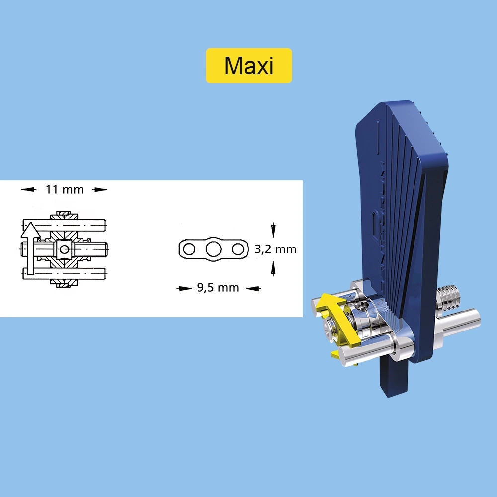 حداکثر گسترش | 6.5 میلی متر (Mini)، 7.5 میلی متر (Maxi ،Medium)، 11 میلی متر (Magnum) |