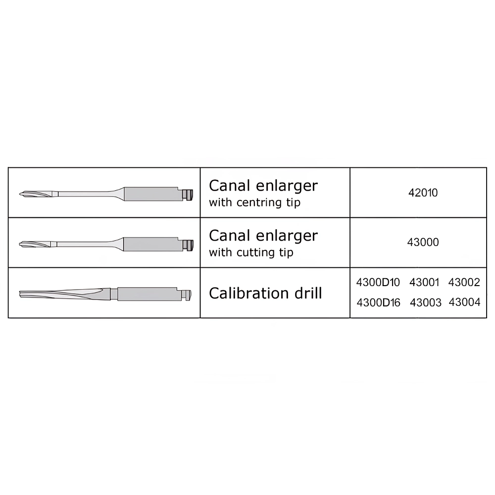 22 عدد فایبر پست (5 عدد از هر سایز 1، 2 و 3 عدد از هر سایز 3، 4، D1.6 ،D1.0) + 6 عدد دریل calibration ( 1 عدد از هر سایز D1.6 ،D1.1 ،4 ،3 ،2 ،1) + یک عدد دریل Preshaping with guiding tip (REF 42010) + یک عدد دریل Preshaping with cutting tip (REF 43000) + یک عدد گیج اندازه گیری سایز + یک عدد باکس قابل اتوکلاوویژگی های محصول