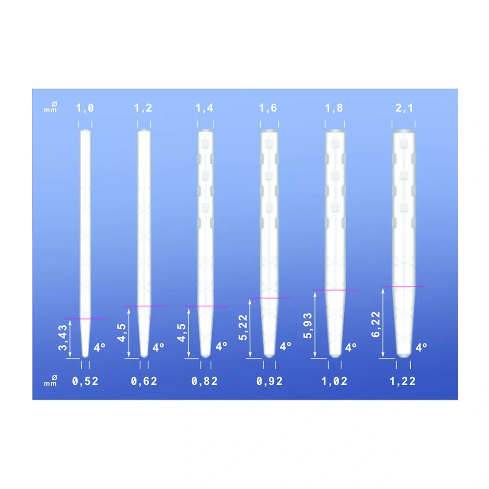 سایز فایبر پست | سایز D1.0 (قرمز)، سایز 1 (سفید)، سایز 2 (زرد)، سایز D1.6 (سبز)، سایز 3 (آبی)، سایز 4 (مشکی) |